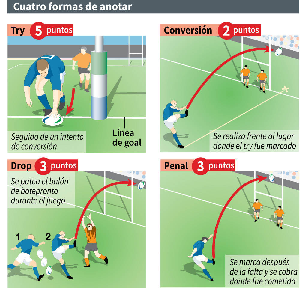 Es juga amb una pilota ovalada on la intenció és, o portar-la fins a la zona d’assaig del rival, o fer una puntada entre els pals.