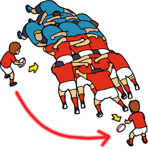 L’scrum (melé) consta de vuit jgadors (els davanters) en formació de tres línies, on llencen la pilota entre mig d’amdós equips i fent força han d’aconseguir, sense tocar-lo amb les mans, fer passar la pilota fins a l’altre banda del seu equip per tal que, normalment, el medio melé, l’agafi i continui el joc.